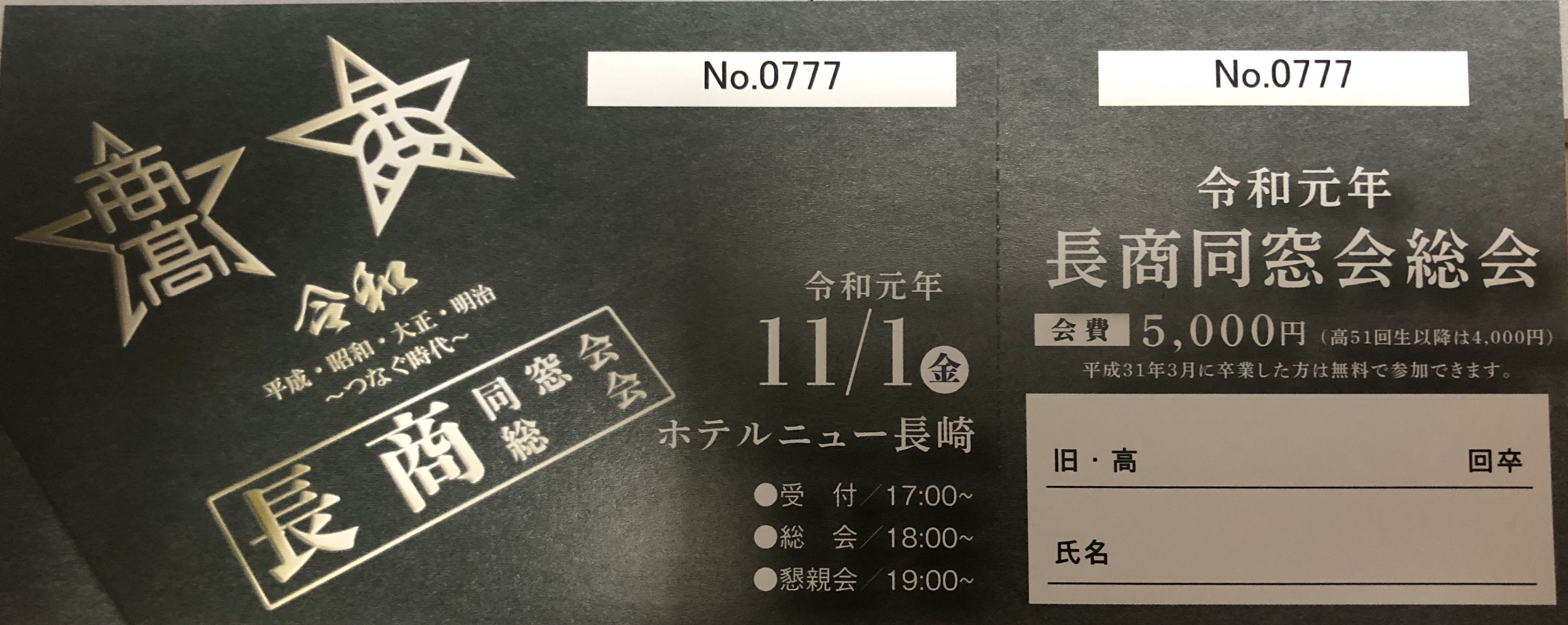 長商同窓会 総会のご案内 令和元年11月1日(金曜日) ホテルニュー長崎