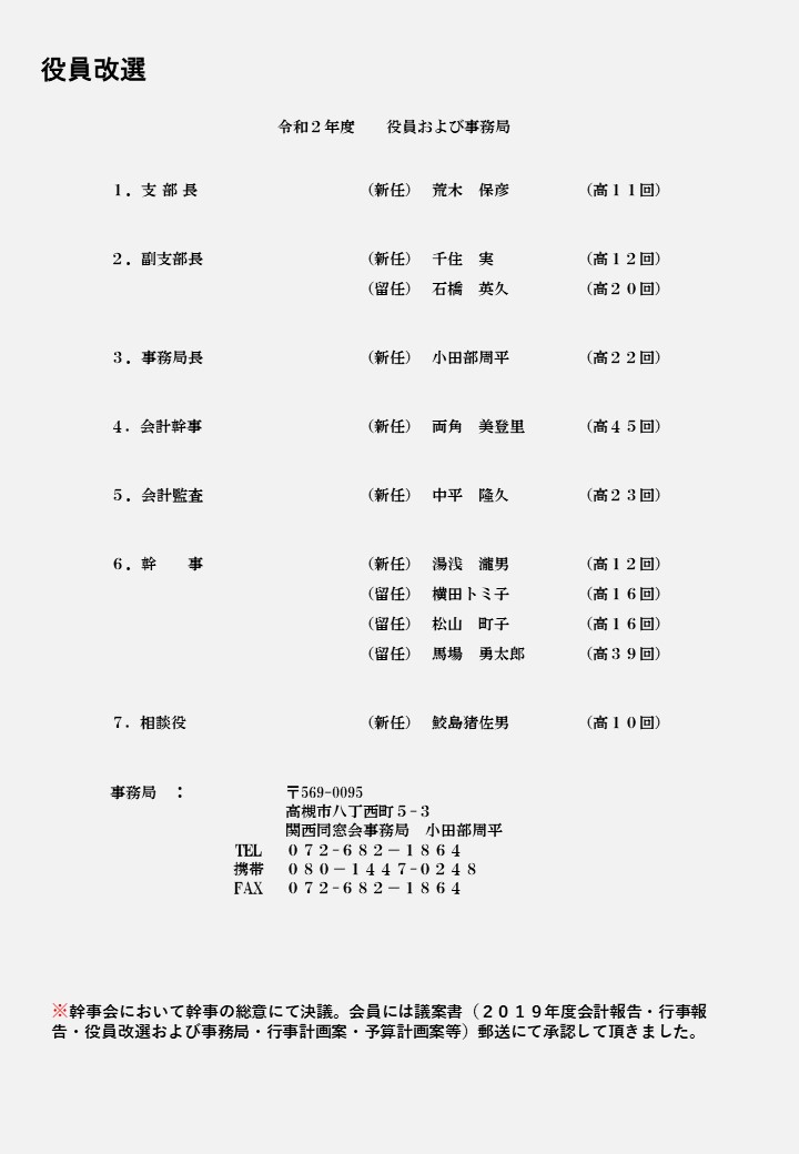 長商同窓会 関西支部 令和2年度秋季行事の中止のお知らせ