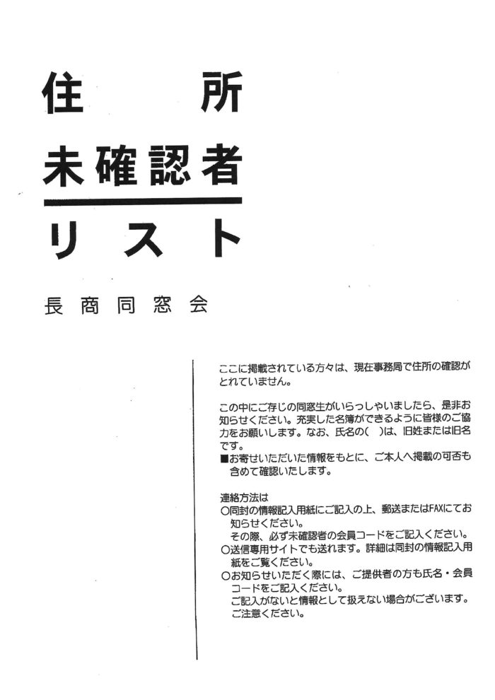 4月8日発送する名簿予約者へのご案内の中に「住所未確認者リスト」を同封いたします。