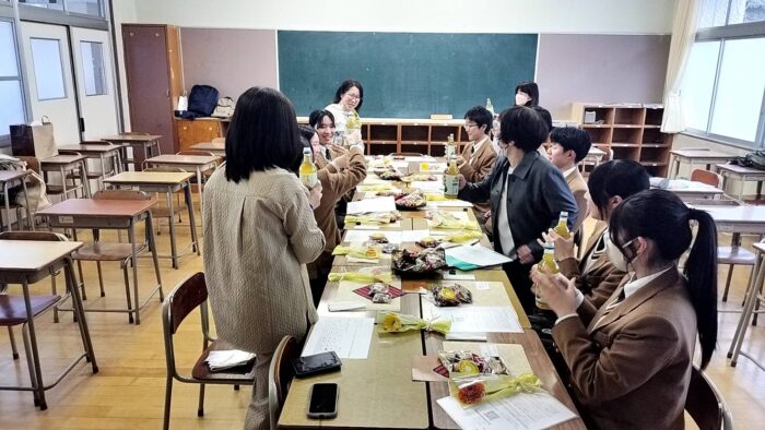 令和7年2月28日 同窓会入会式終了後、学習室にて同窓会女性部主催の「茶話会」を開催しました。
