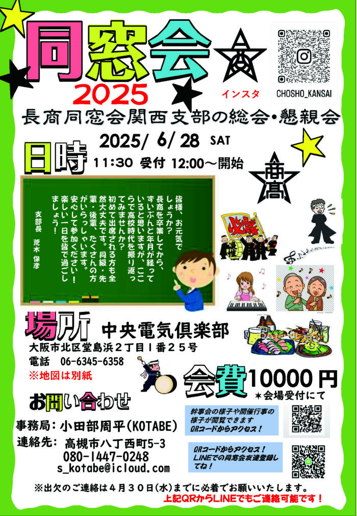 関西在住の同窓生の皆様!是非ご参加下さい。