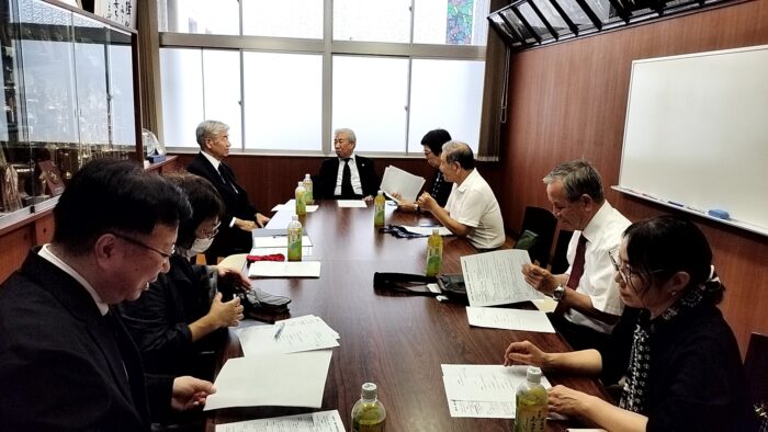 母校原爆慰霊祭終了後、母校応接室をお借りして臨時の役員ミーティングを開催しました。 母校創立140周年記念事業関連の議題で大いに盛り上がりました。