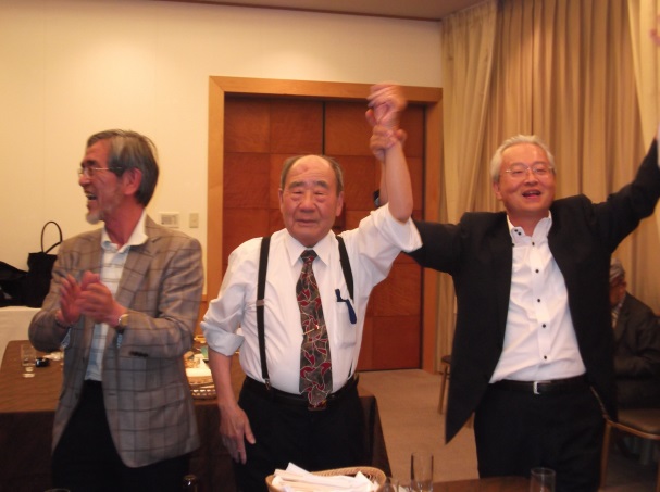 木村顧問(高13回)の万歳三唱、塚本幹事の閉会の辞でお開きとなった後、